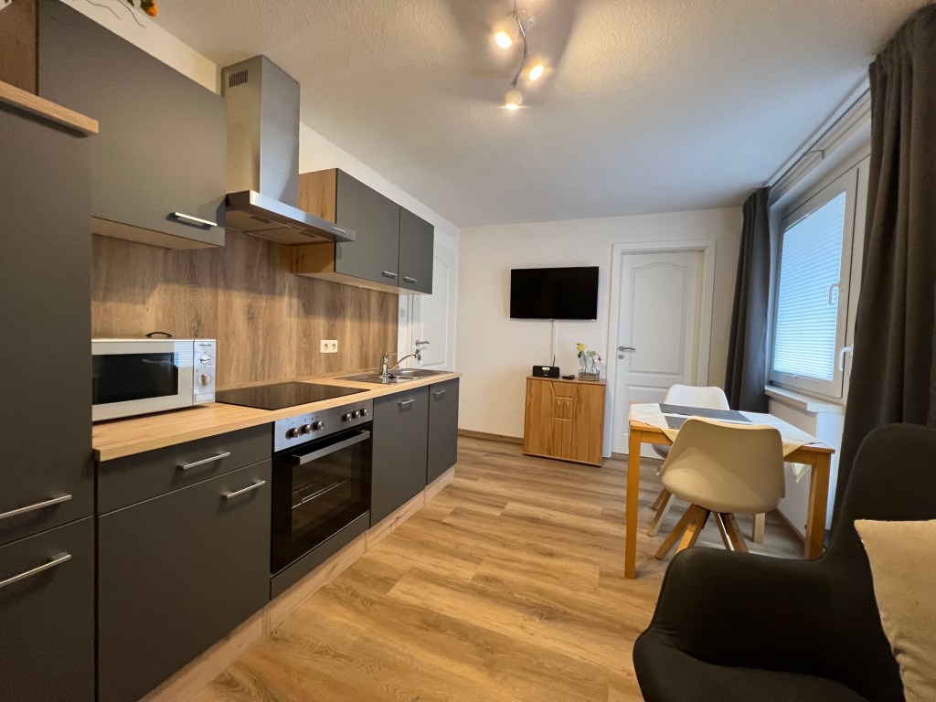 40qm für zwei Personen, Balkon, Küchenblock mit Kühlschrank, Backofen, Herdplatten, Mikrowelle, Fernseher, Radio, Festnetztelefon, WLAN, Badezimmer mit Dusche, Föhn